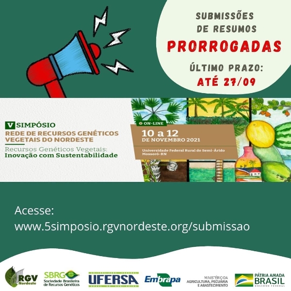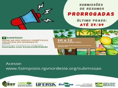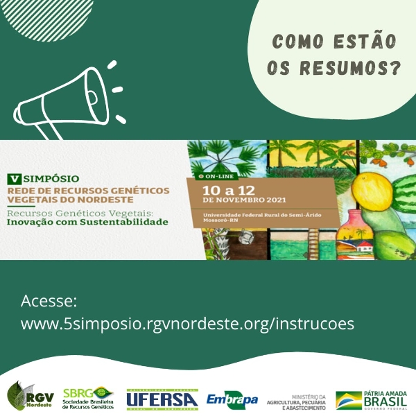 O V Simpósio da Rede de Recursos Genéticos Vegetais do Nordeste acontecerá no formato on-line no período de 10 a 12 de novembro de 2021. O evento é uma ação da Rede de Recursos Genéticos Vegetais do Nordeste e essa edição será liderado pela UFERSA, com a colaboração de parceiros.