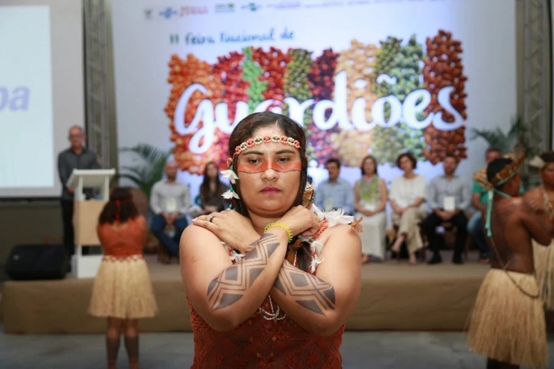 A guardiã Israelita Bezerra, da comunidade indígena Sateré Mawé, no Amazonas, levou alguns tipos de artesanato, além de andiroba, copaíba, mirantã e bastão de guaraná. Segundo ela, foi um privilégio poder levar seus produtos para o conhecimento de outros guardiões. “Eu gostei muito de mostrar o nosso trabalho, que é de qualidade, certificado, com todo os itens orgânicos, livre de agrotóxicos, tudo natural. Fui visitar as barracas de outros guardiões e aprendi muito, também. Não imaginava que havia tantas pessoas tentando cultivar nossa cultura de antigamente. Somos pequenos, mas acredito que unindo força nos tornaremos grandes. O que outras tribos não têm, nós damos a eles, assim como eles nos fornecem o que não possuímos. Vamos conseguir comer uma comida saudável”, conta esperançosa. O cultivo teve início com os avós dela e todos os descendentes dão continuidade ao trabalho. Os Sataré Mawé possuem, com exclusividade, o banco genético mundial de um tipo de guaraná, por exemplo.